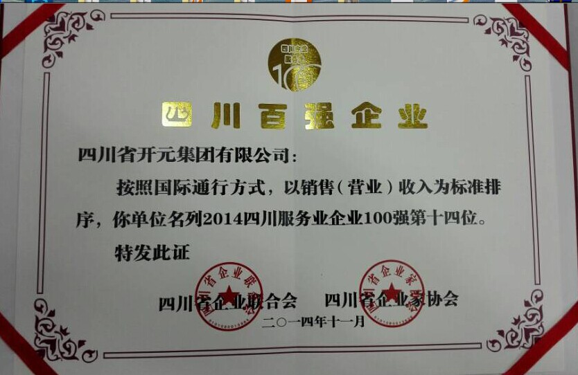 近日,以四川省內(nèi)各知名企業(yè)營(yíng)業(yè)規(guī)模、盈利能力及年度競(jìng)爭(zhēng)力為依據(jù),綜合展現(xiàn)企業(yè)實(shí)力的省百?gòu)?qiáng)企業(yè)名單出爐,開(kāi)元集團(tuán)憑借自身綜合實(shí)力和行業(yè)影響力,穩(wěn)居榜單前列,分獲省百?gòu)?qiáng)企業(yè)第五十一位,百?gòu)?qiáng)民營(yíng)企業(yè)前十,省服務(wù)企業(yè)第十四位,民營(yíng)農(nóng)資服務(wù)企業(yè)第一的好成績(jī)。