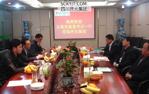 11月27日,新疆尼勒克縣縣委書記吳奉軍一行四人到集團(tuán)考察訪問。集團(tuán)董事長、總裁趙思儉,總裁助理?xiàng)畲笃降扰c吳書記一行進(jìn)行了親切的溝通和交流。