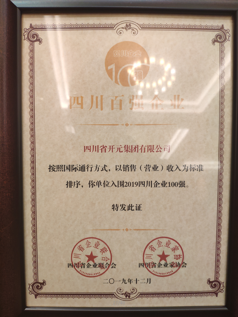 四川開元集團(tuán)入圍2019年四川企業(yè)100強(qiáng)