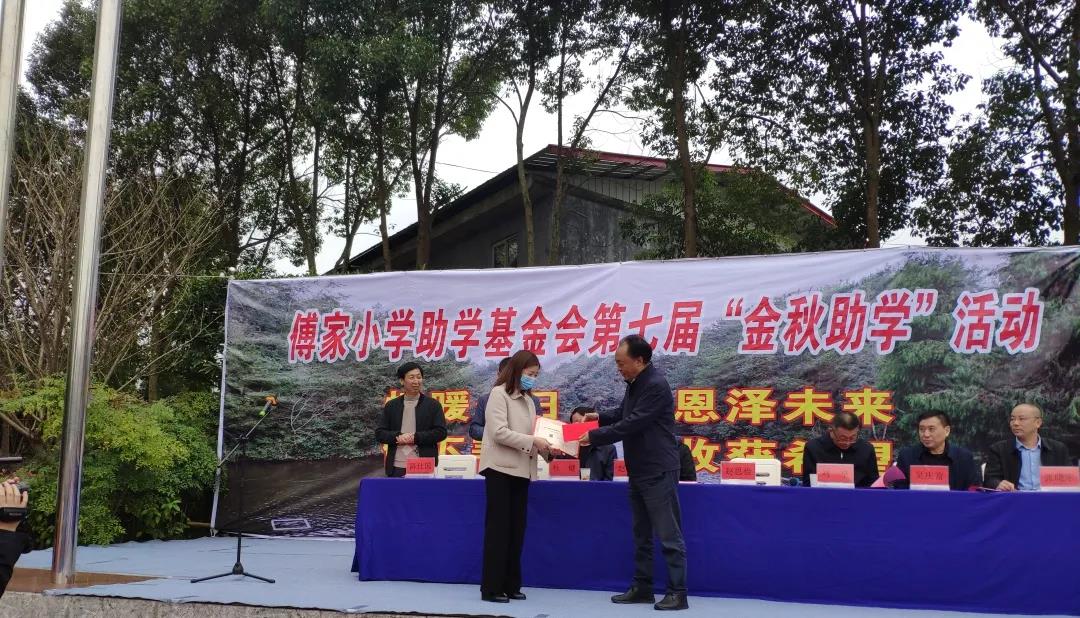 助學活動中,長赤鎮鎮長陳云龍宣讀了本屆“金秋助學”活動的捐贈名單。隨后,校友基金會舉行了頒獎及發放助學金儀式。最后,活動在傅家小學學生的精彩演出中圓滿結束。