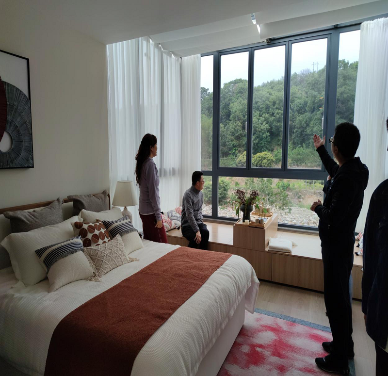 林主席一行饒有興致地參觀樣板房,并仔細了解房屋設(shè)計、布局等情況。