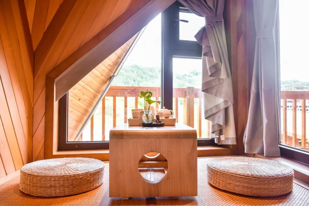 在木屋文化的發源地愛沙尼亞,木屋被稱為“同居住者共呼吸”的建筑。因為木屋結構建筑通過合理設計與布局,適量吸收太陽光線,雨季還能調節室內濕度。走進客房內,便能聞到木材散發出富含芬多精的原木清香。角落里特設的榻榻米和精致茶臺,更是讓客人得以在迷人景致中舒坦心境,享受靜謐空間。